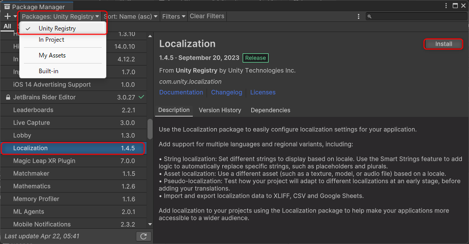 → ローカライズ(1) Localizationの導入