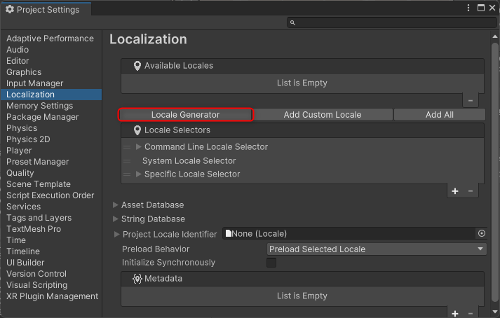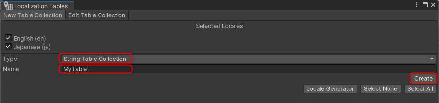 1.メインメニューから [Window ⇒ Asset Management ⇒ Localization Tables] を選択し、"Localization TablesWindow" を開きます。
