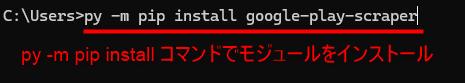 2. コマンドプロンプトで "py -m" を先頭につけた pip コマンドを入力し実行するとライブラリがインストールされます。